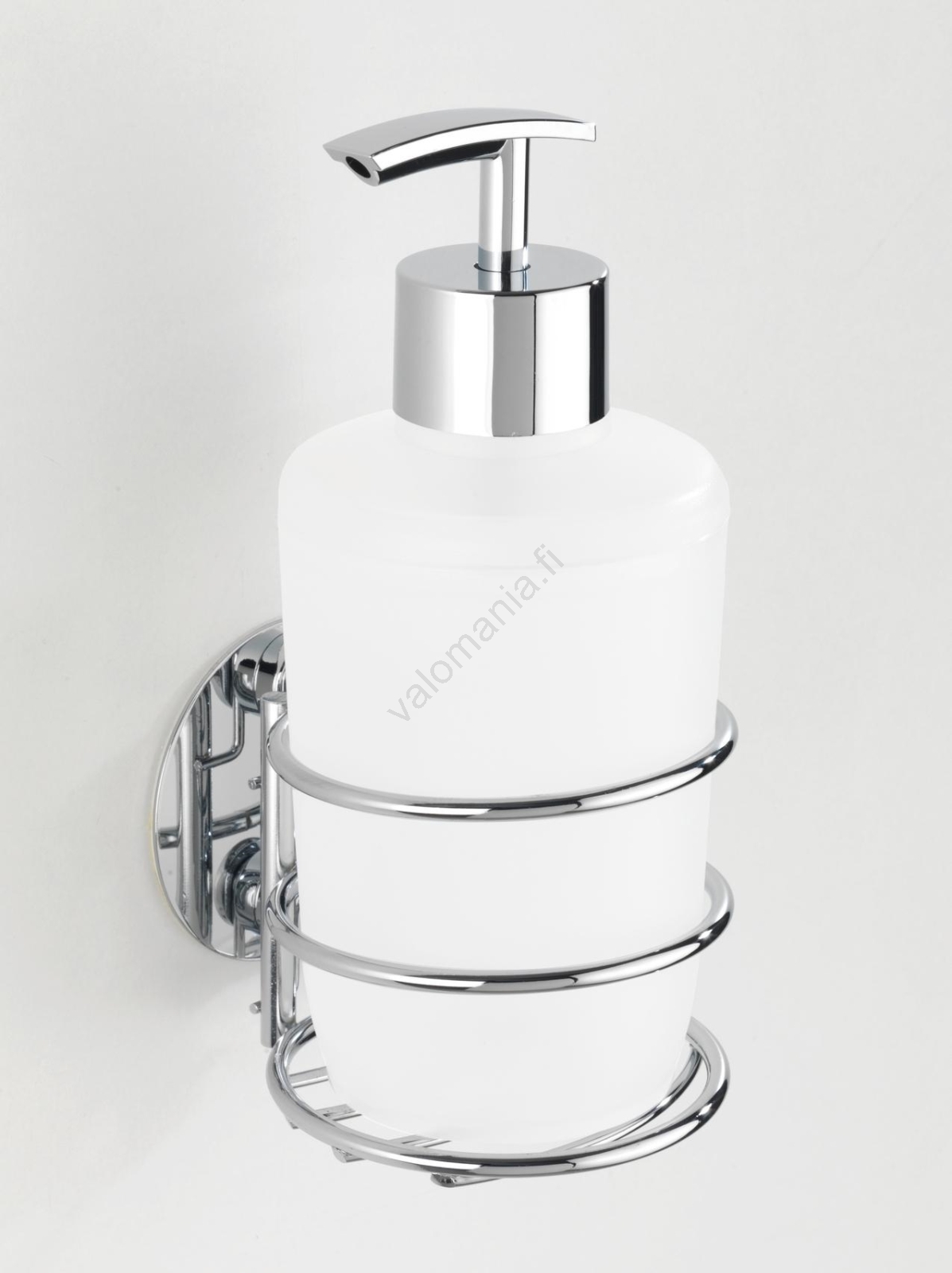 WENKO 18777100 - Saippua-annostelija TURBO-LOC, pyöreä teräs 7,5x16,5 cm kiiltävä kromi/valkoinen