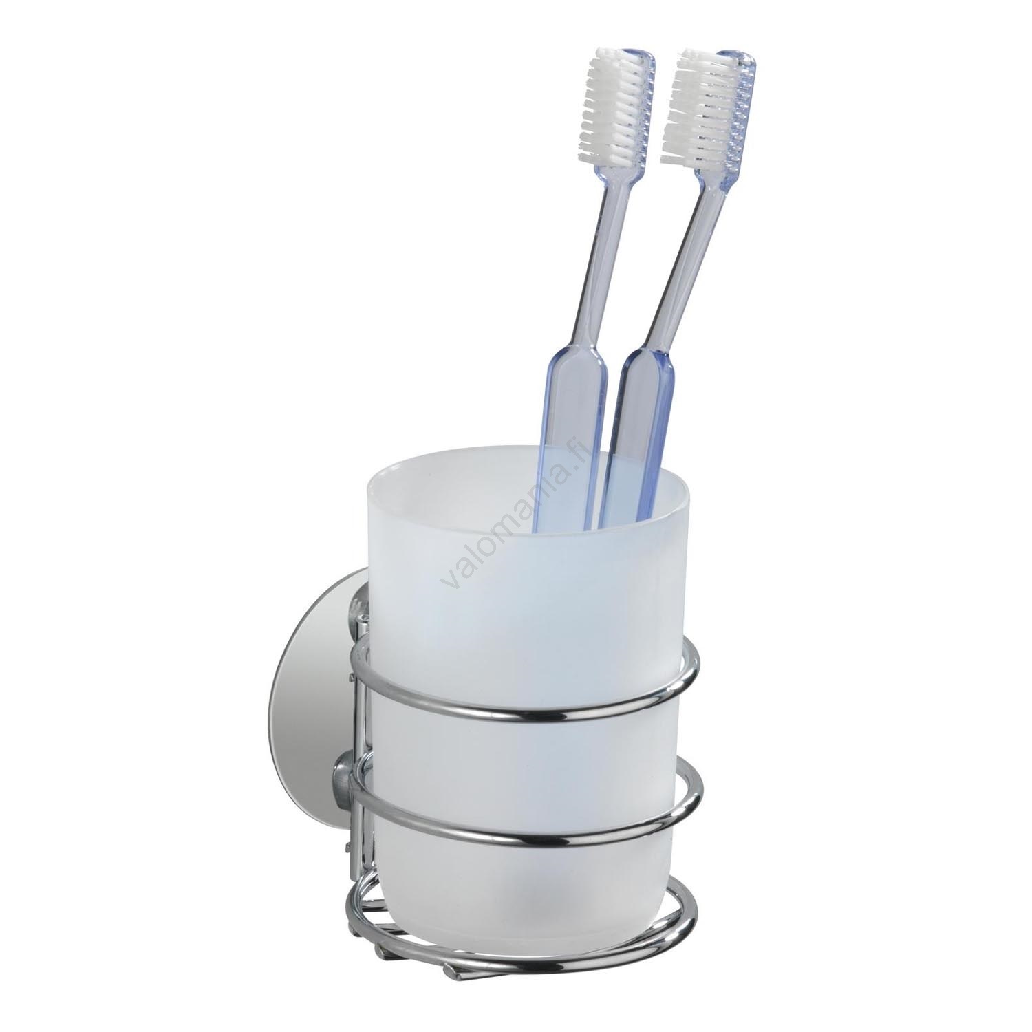 WENKO 18779100 - Hammasharjakuppi TURBO-LOC, pyöreä, teräs, 7,5x9 cm, kiiltävä kromi/valkoinen | Val