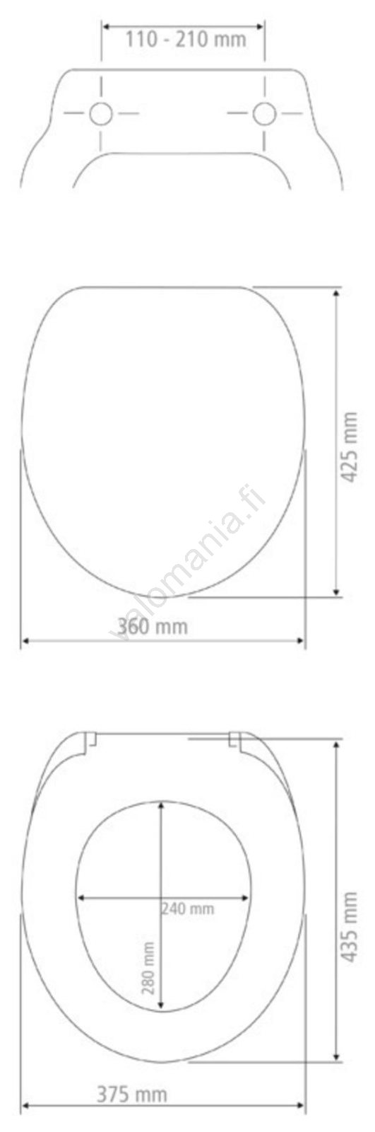 • Yleiskoko, sopii useimpiin tavallisiin WC-istuimiin.