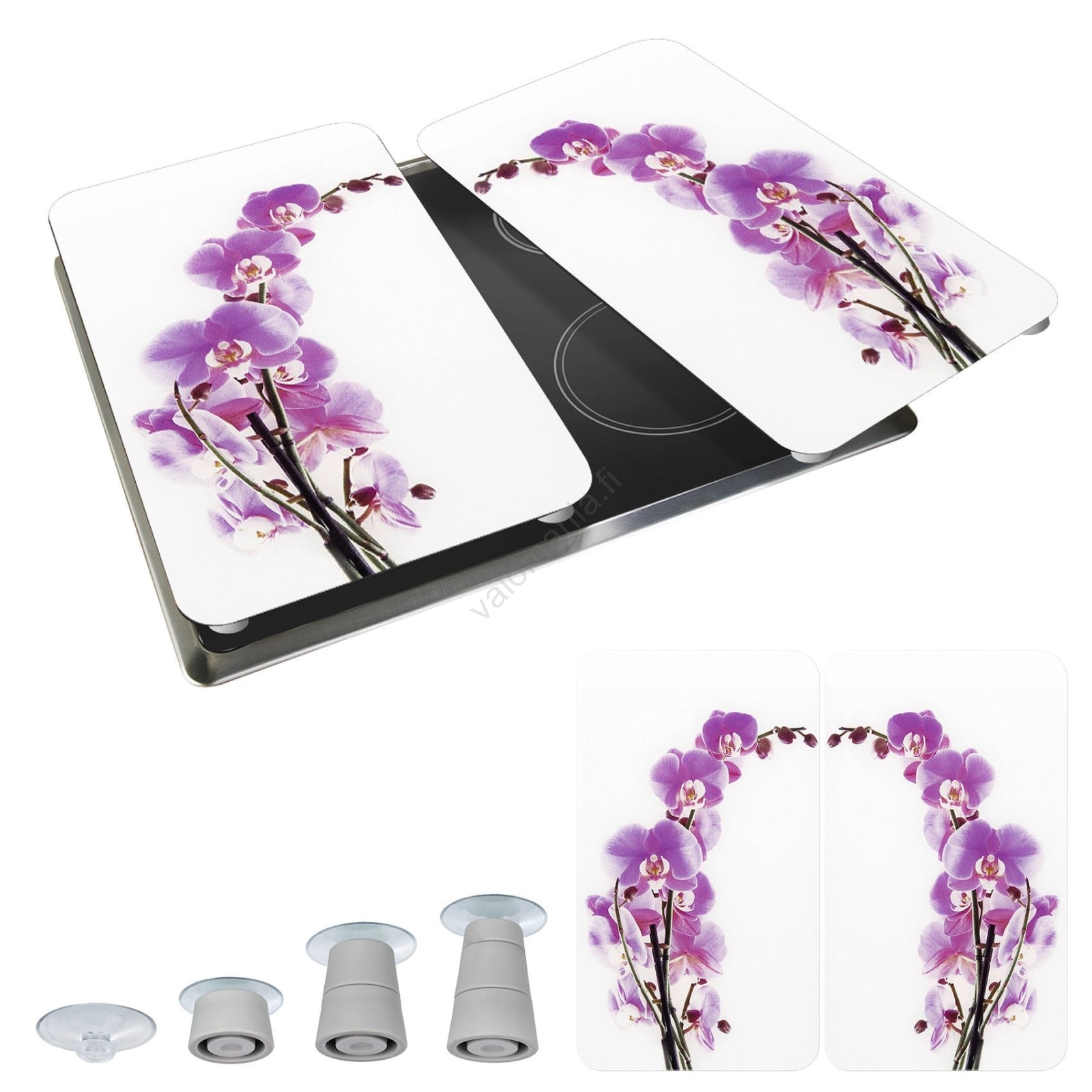 • Monikäyttöinen liesitasosuojien 2 kpl setti orkideakuviolla.