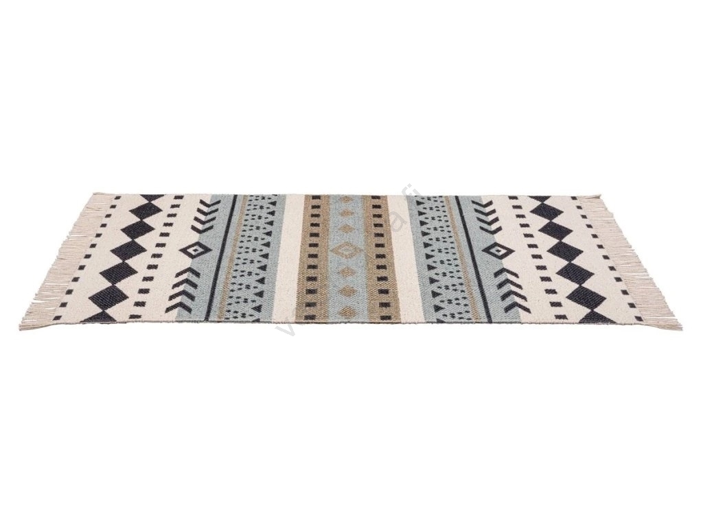 • Tyylikäs etno-design geometrisilla kuvioilla sinisen, beigen ja mustan sävyissä.