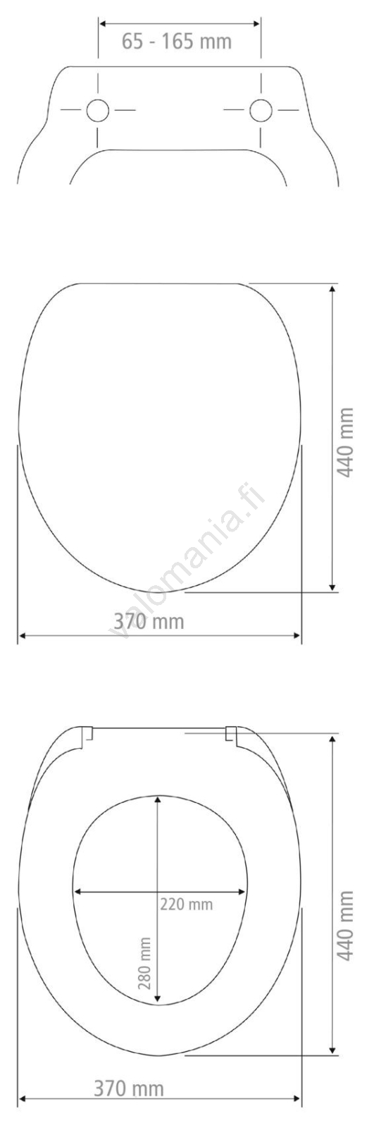 • Kannen ja istuimen mitat 37 x 44 cm – sopii useimpiin standardi-WC-kulhoihin.