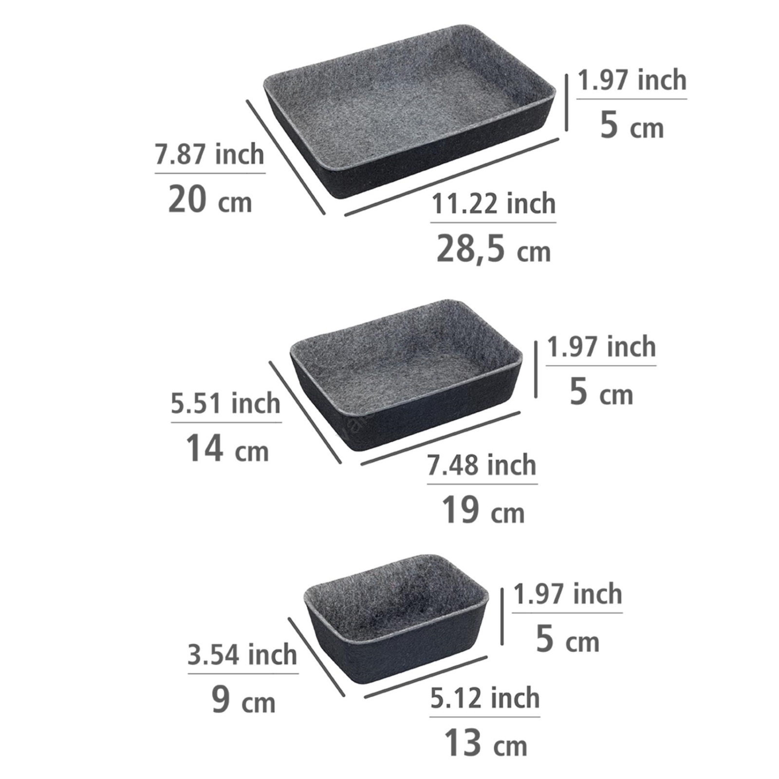 WENKO 64502100 - FELT-laatikkojärjestäjä 28,5 x 20 cm, harmaa | Valomania
