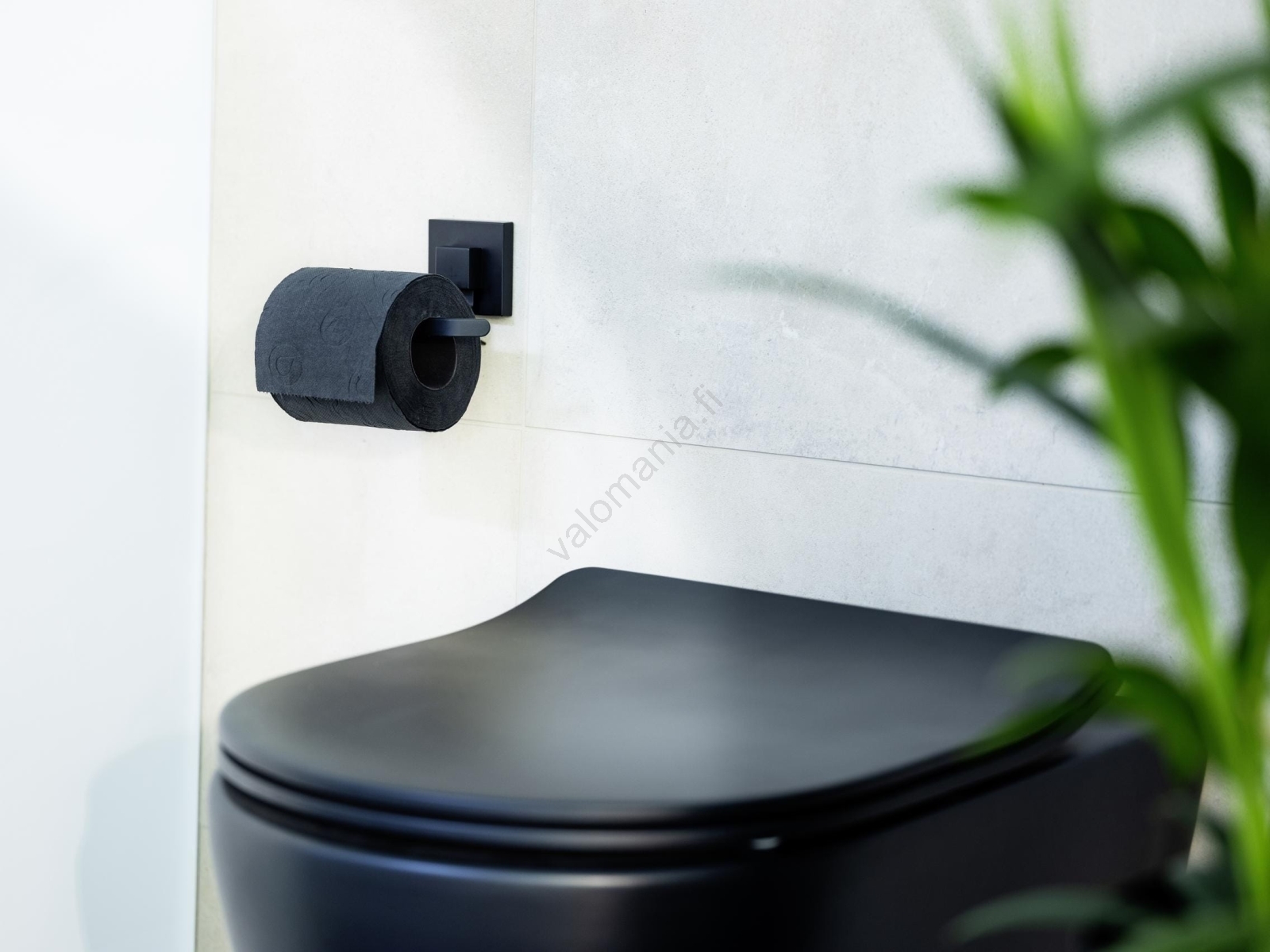 • Tyylikäs držák toaletního papíru modernissa mustassa viimeistelyssä.