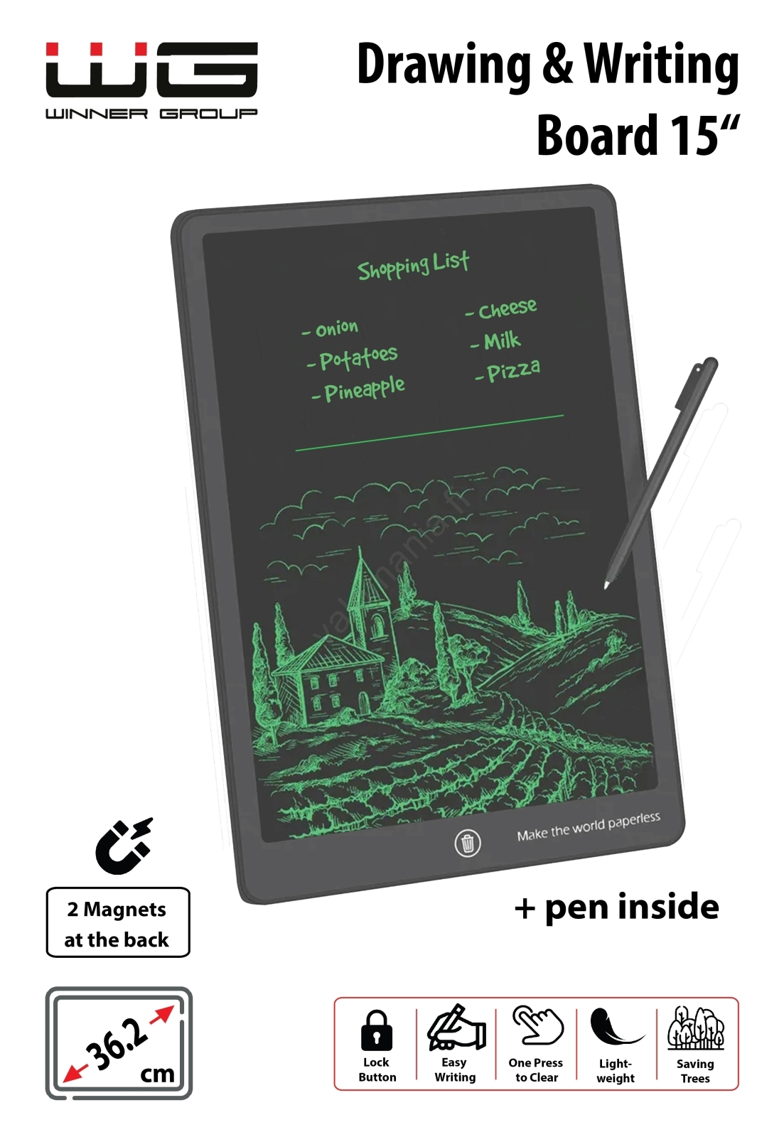 Winner Group - Elektroninen piirtoalusta 15" 1xCR2032 musta