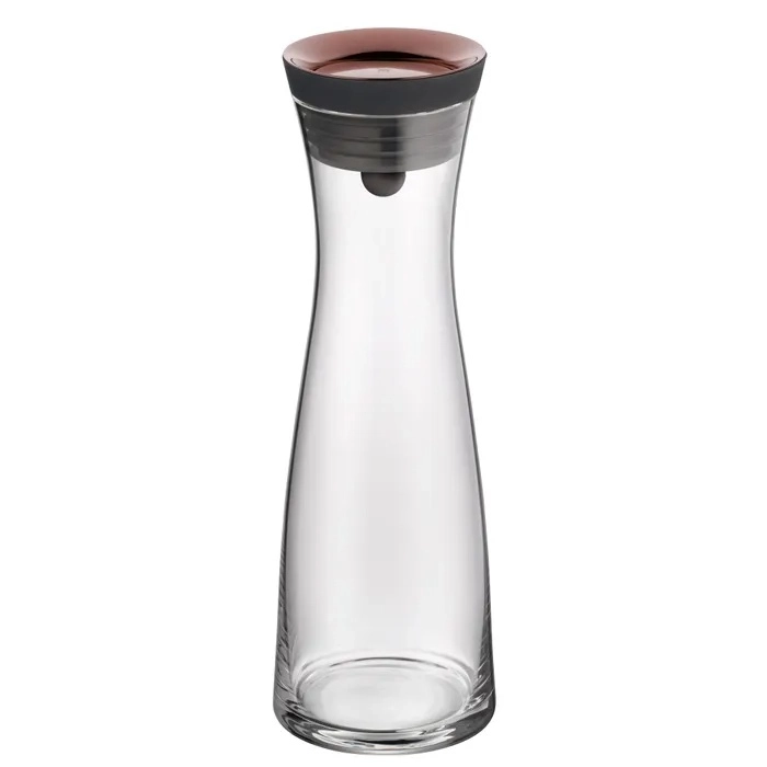 • WMF Basic -sarjan karaffi yhdistää hoikan muotoilun älykkääseen ja hygieeniseen korkkiin ja siinä on kultainen viimeistely.
