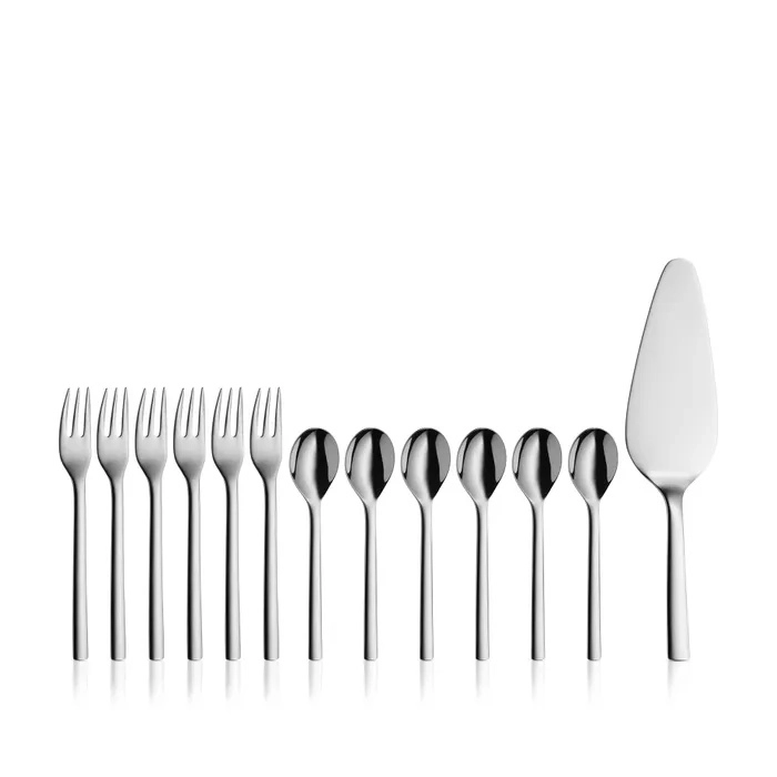 • Sarjaan kuuluu 6 jälkiruokahaarukkaa, 6 kahvi-/teelusikkaa ja 1 käytännöllinen kakkulapio.