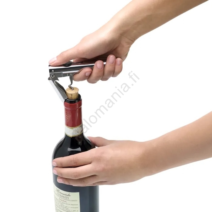• 3-in-1-toiminnot: korkkiruuvi (korkin poistoon), kalvonleikkuri (kapselin poistoon) ja pullonavaaja (kruunukorkkeihin).