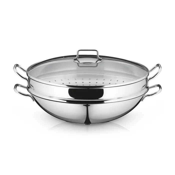 • Monipuolinen käyttö: Wok soveltuu erinomaisesti nopeaan korkealämpöiseen paistamiseen, hauduttamiseen ja höyrykorin ansiosta myös terveelliseen höyryttämiseen.