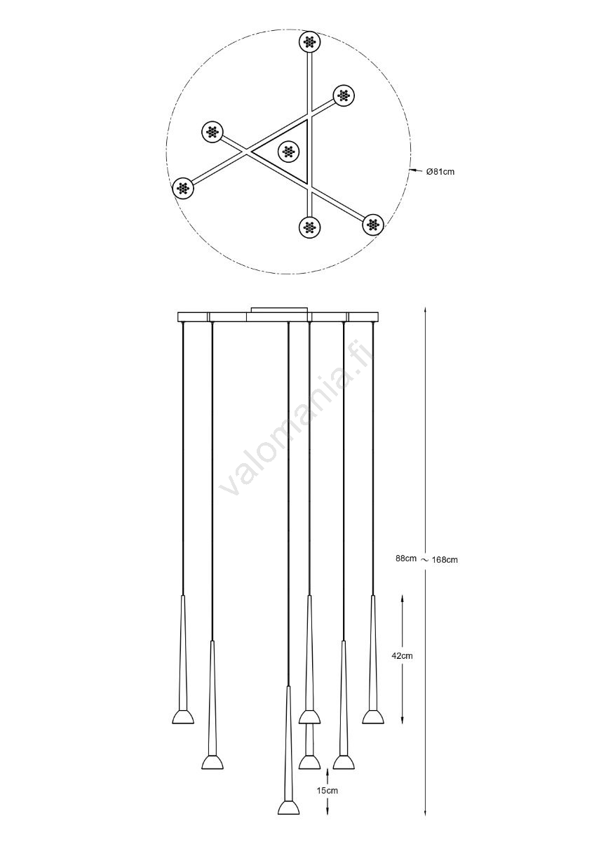 Zuma Line P0603-07C-SDB1 - BOSTON LED-riippuvalaisin vaijerilla 7xLED/6W/230V musta/kulta | Valomani